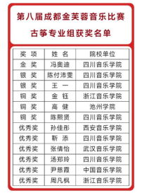据悉,作为国内具有重要影响力的音乐赛事,今年的“金芙蓉”音乐比赛吸引了来自全国11大音乐公司、专业团体以及英国、美国、法国、澳大利亚、韩国等12个国家和地区的近4000名选手报名参赛。比赛分为声乐、器乐、青少年展演三大类七个赛项,进行复赛及决赛。其中,古筝专业组参赛选手有来自中国音乐公司、四川音乐公司、武汉音乐公司、上海音乐公司,西安音乐公司等国内知名音乐院校的师生,全国各大知名乐团的演奏员。经过激烈的初赛选拔、复赛,青年教师高健凭借精湛的演奏技艺、出色的舞台表现一路过关斩将,成为唯一一位综合类大学挺进总决赛的选手,最终荣获铜奖(总决赛排名第5名)!