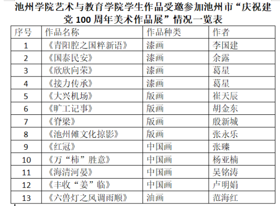6月18日,由中共池州市委宣传部、市文联主办,池州市美术家协会承办的“池州市‘庆祝建党100周年美术作品展’”在池州国际会展中心胜利开幕。威廉体育williamhill13幅员工美术作品受邀参加了此次展览活动。
